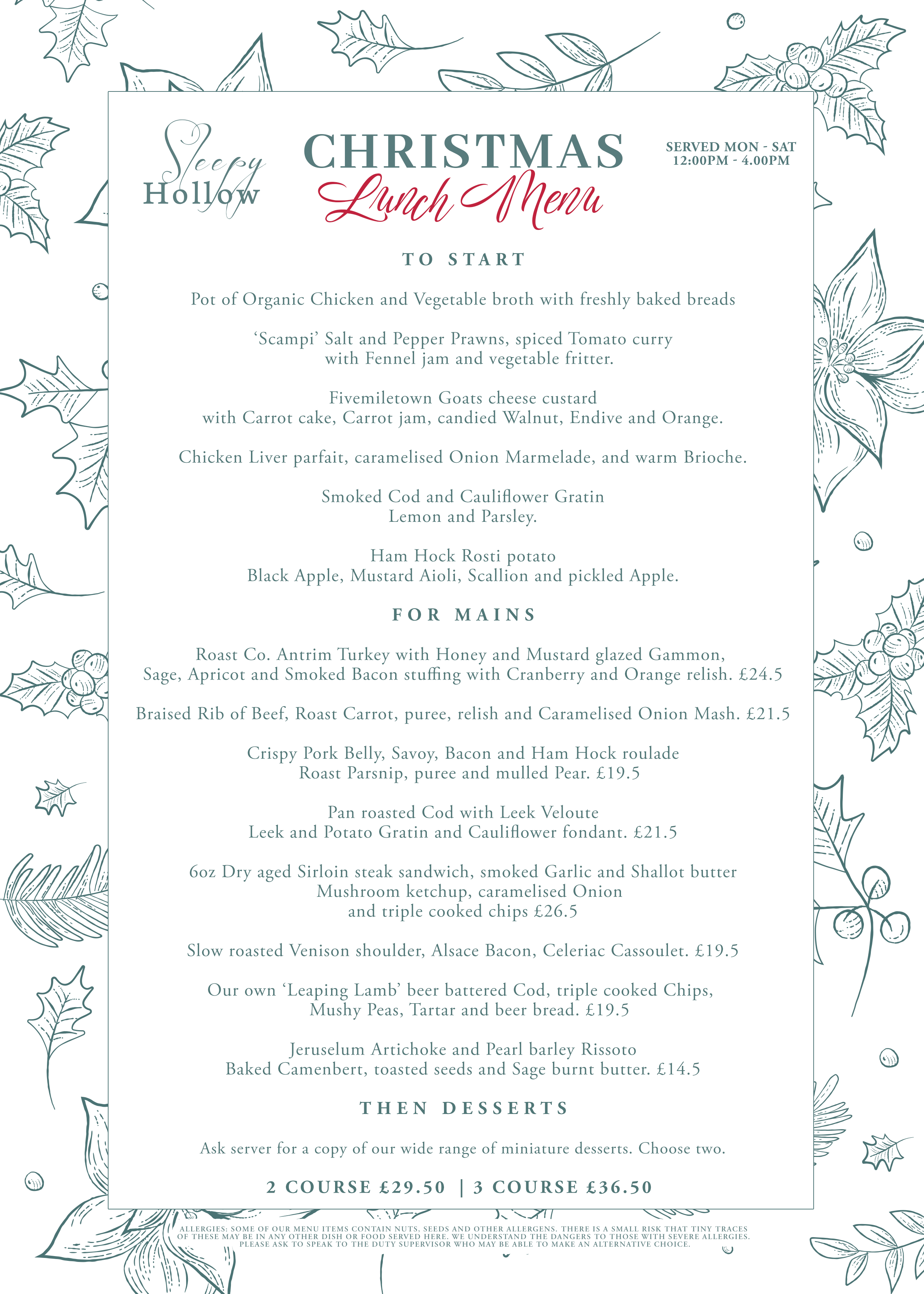Everything about Sleepy Hollow and my visit was perfect, nothing was wrong, nothing was out of place. Lovely staff, beaituful well presented food , lovely surroundings and well worth the money.